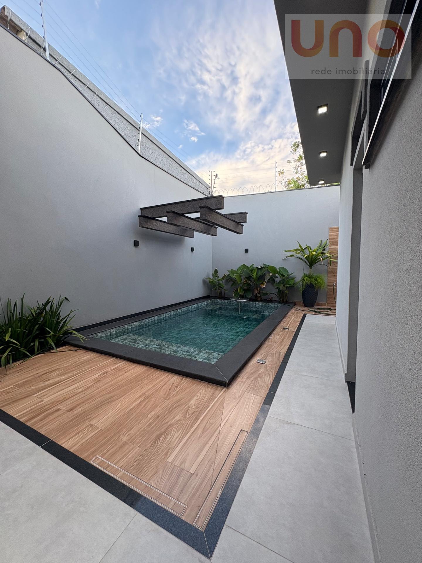 A área de lazer é outro diferencial irresistível: a casa dispõe de uma piscina moderna com cascata, perfeita para momentos de relaxamento, confraternizações e finais de semana inesquecíveis. Um verdadeiro refúgio dentro da cidade.